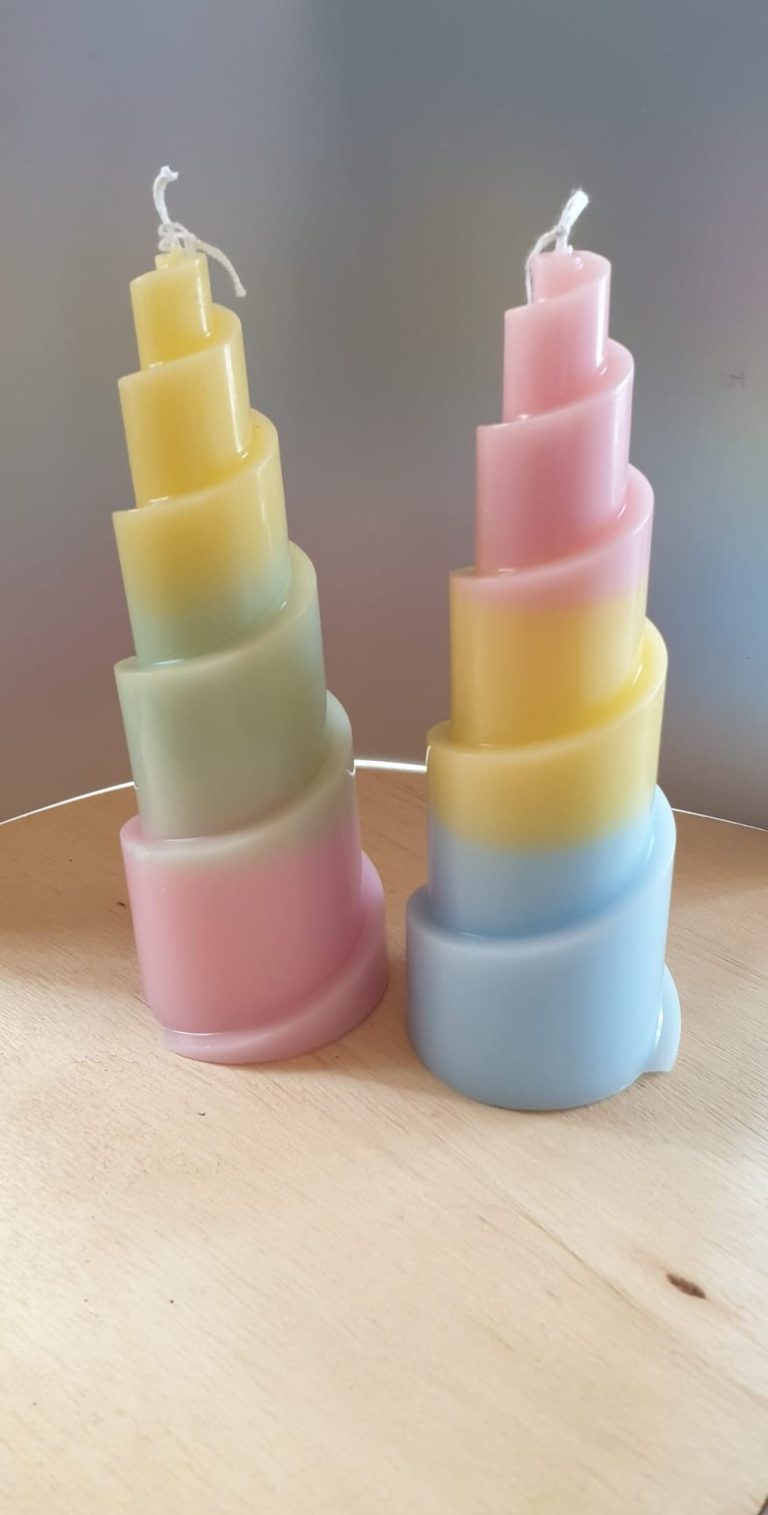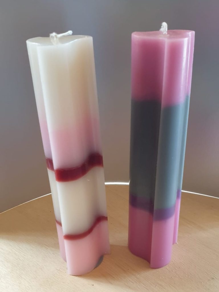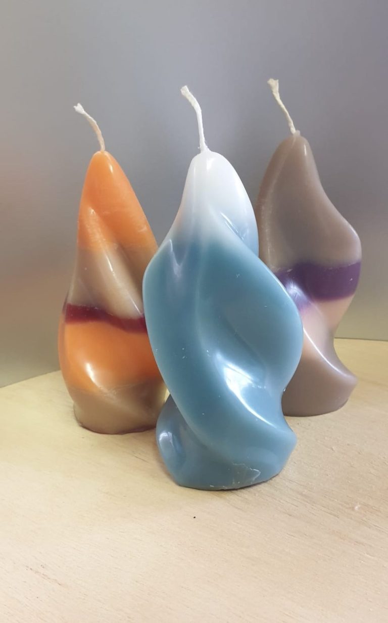 In het begin had ik geen idee waar mijn kaarsen terecht zouden komen. Ik kocht prachtige mallen bij de groothandel, verdiepte me in boeken en tijdschriften en probeerde allerlei creatieve technieken uit. Sommige ideeën werkten geweldig, andere verdwenen snel weer in de prullenbak — maar het plezier bleef. Samen met Peter volgde ik workshops, waardoor mijn kennis en liefde voor het vak alleen maar groeiden.